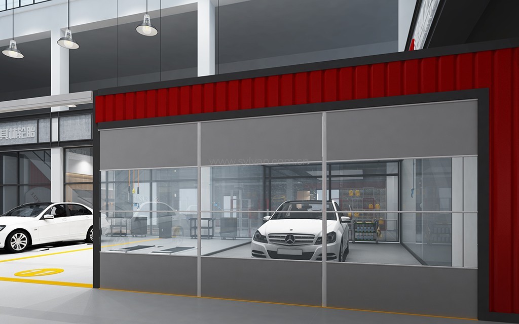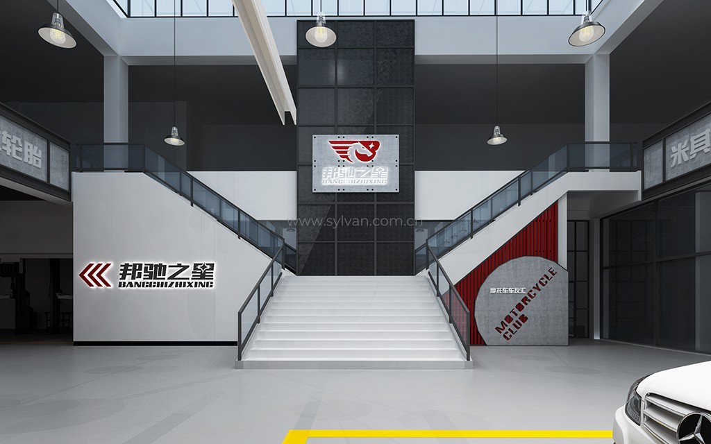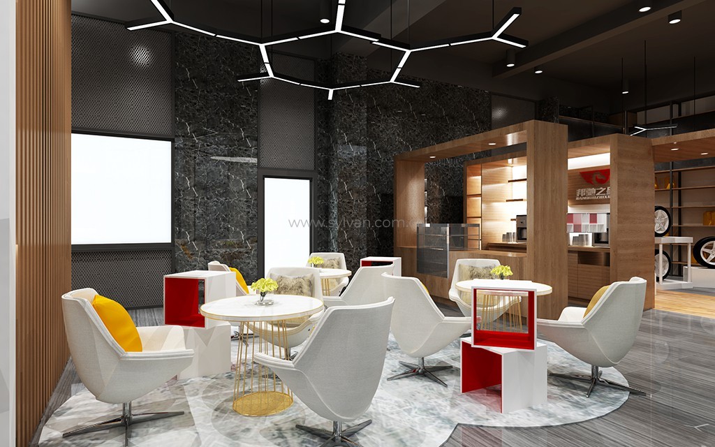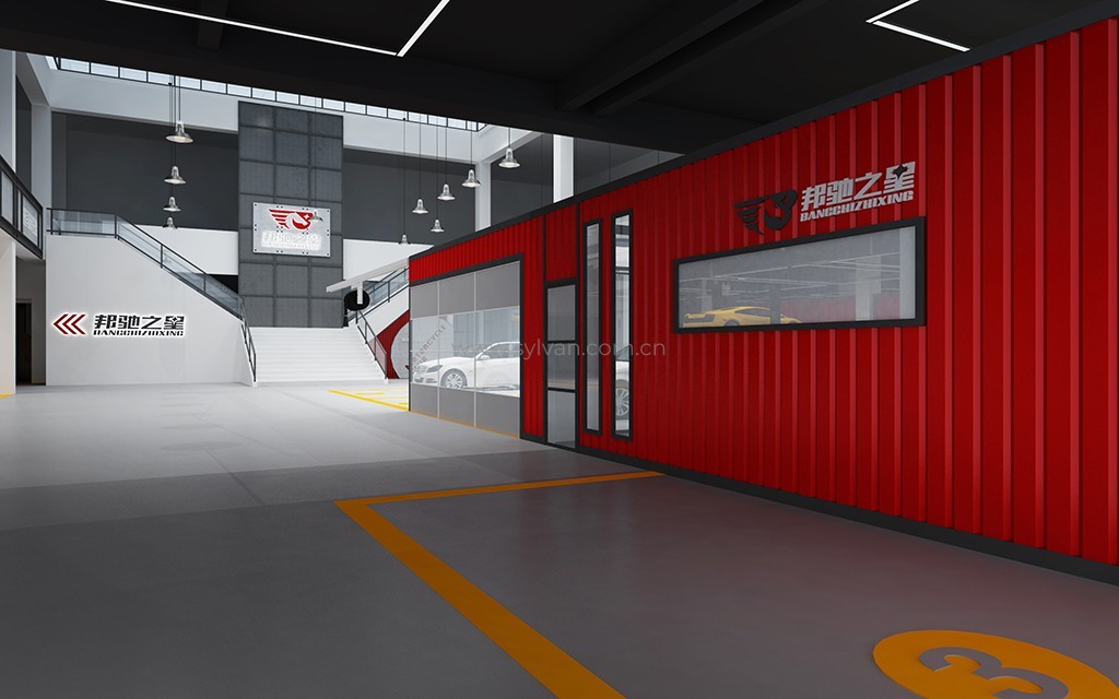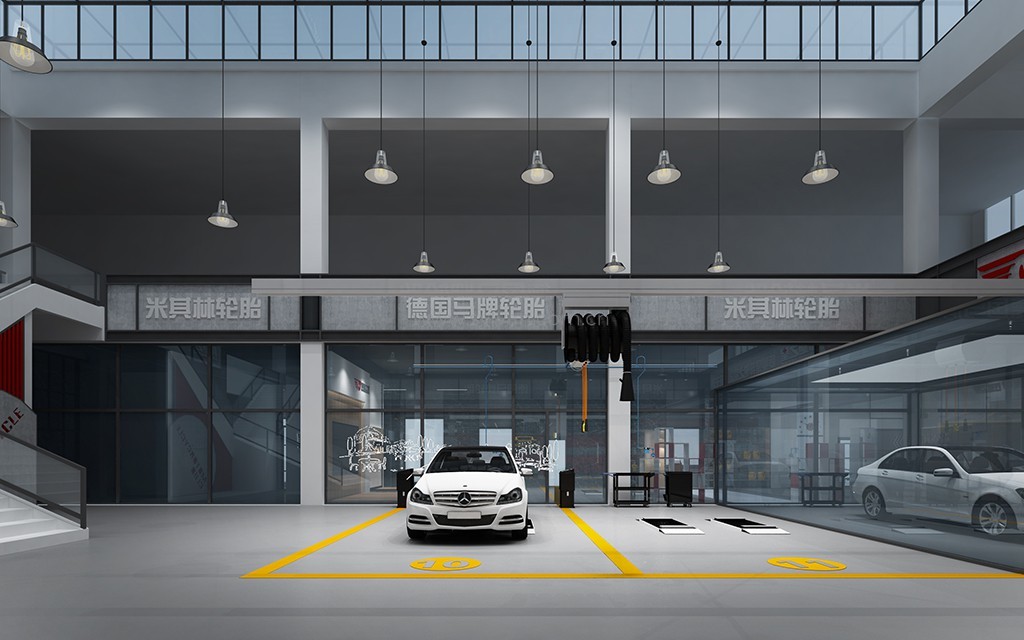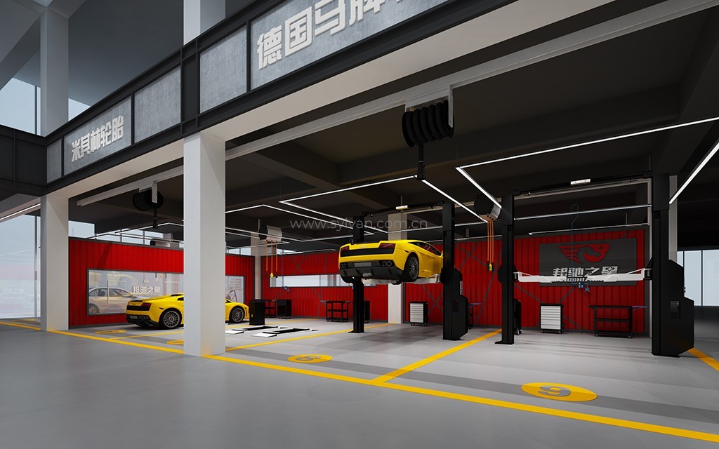 汽车修理厂门头设计、汽车修理厂接待大厅设计、汽车修理厂客户休息区、展区及配件区设计。