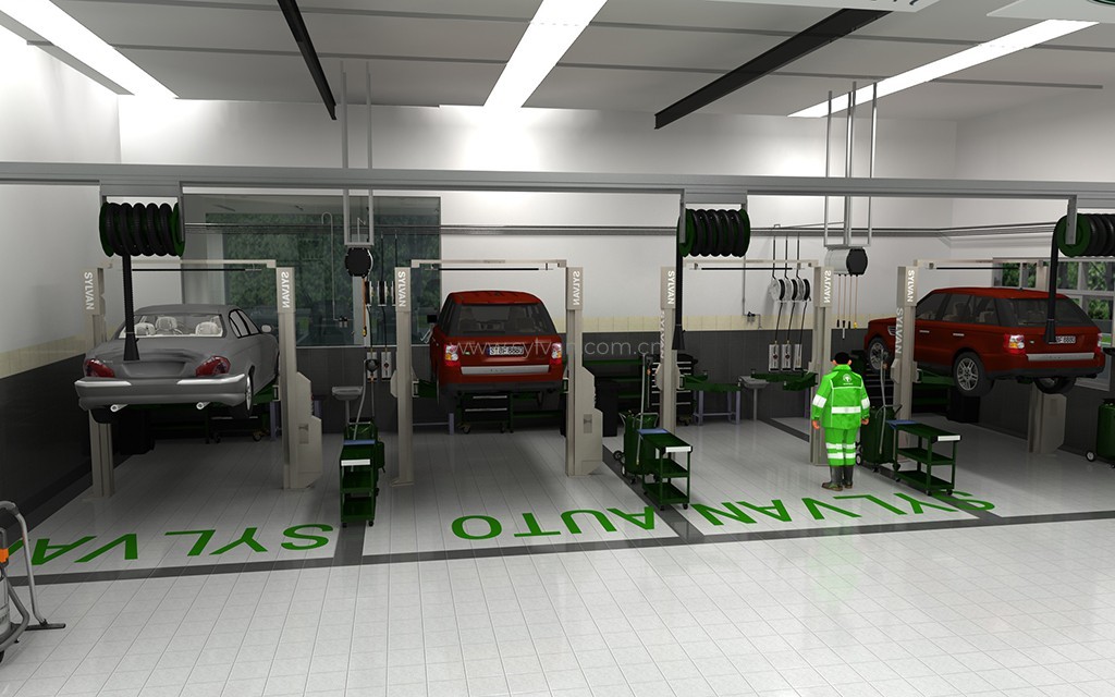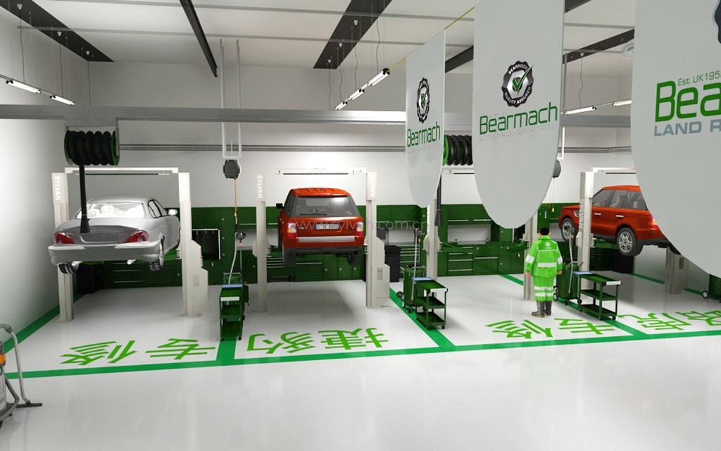 汽修厂企业VI设计、汽车修理厂接待大厅设计、汽修厂车间布局规划、整厂设备供气供水系统配套。