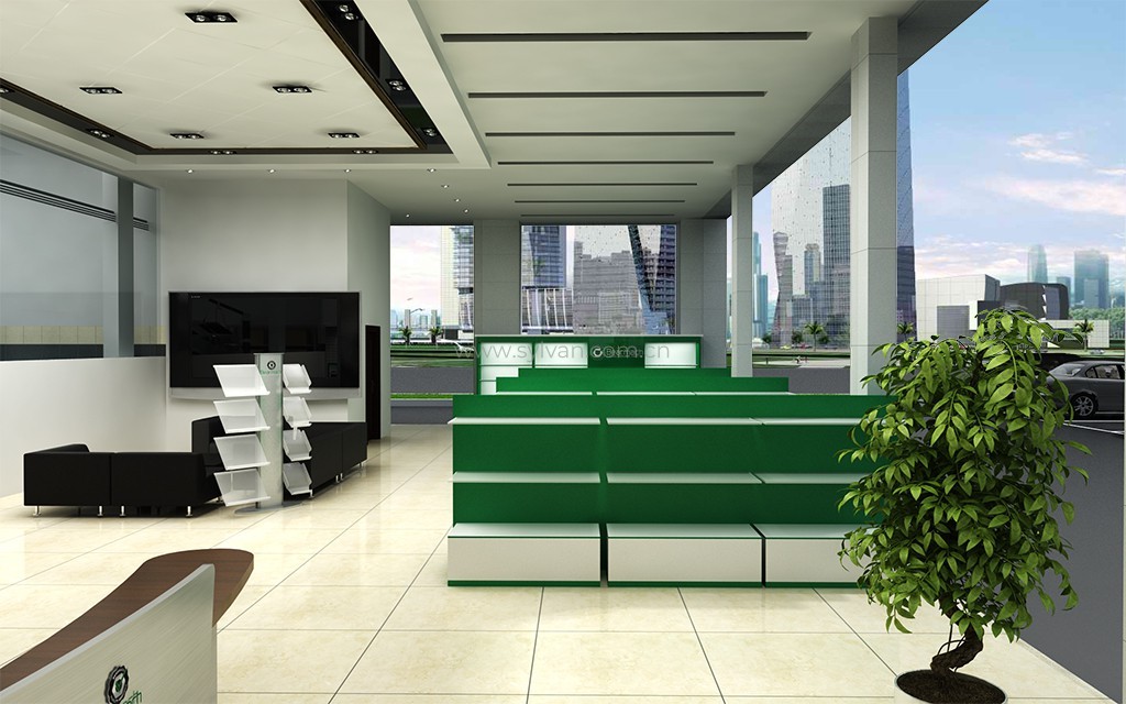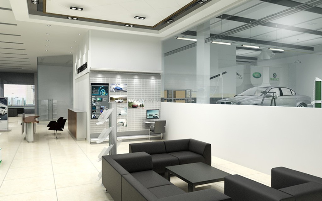 汽车修理厂门头设计、汽车修理厂接待大厅设计、汽车修理厂客户休息区、展区及配件区设计。