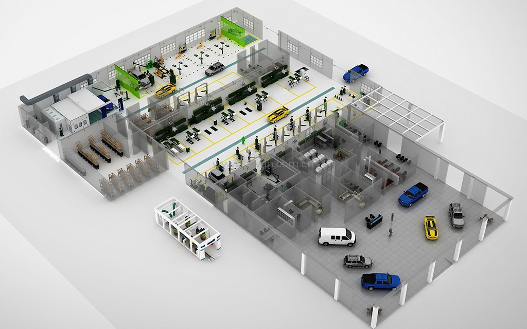 汽修厂企业VI设计、汽车修理厂接待大厅设计、汽修厂车间布局规划、整厂设备供气供水系统配套。