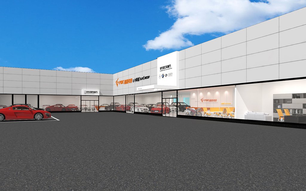 汽车修理厂门头设计、汽车修理厂接待大厅设计、汽车修理厂客户休息区、展区及配件区设计。