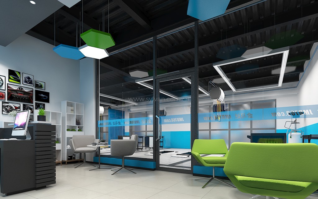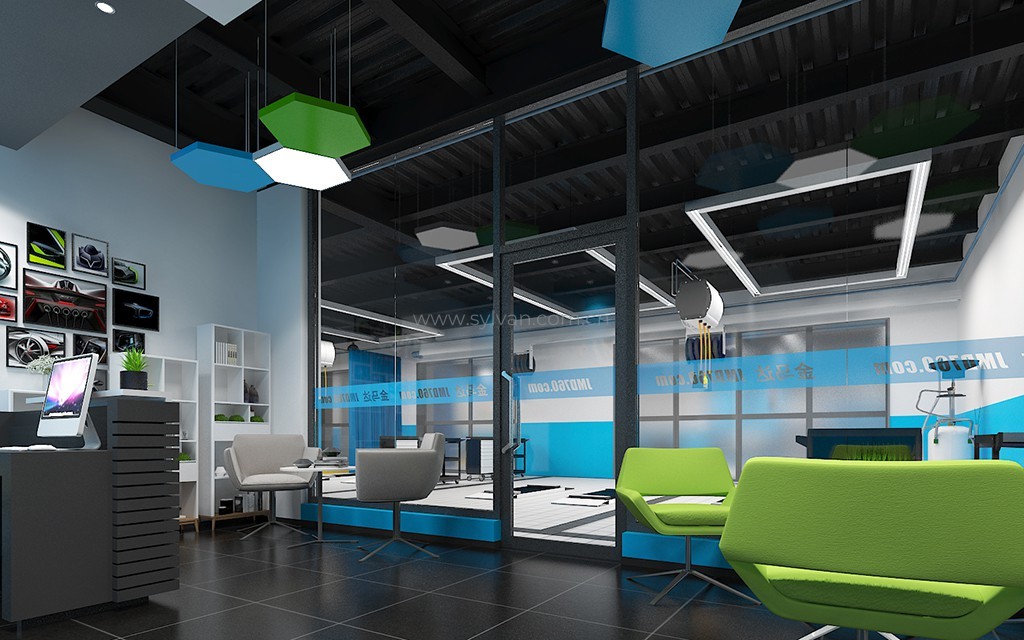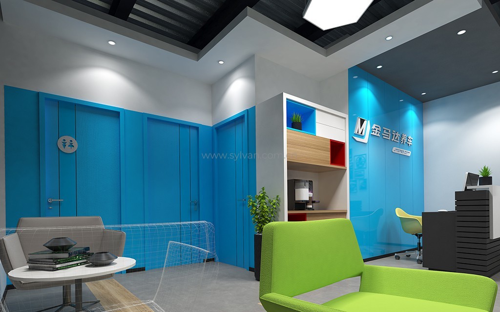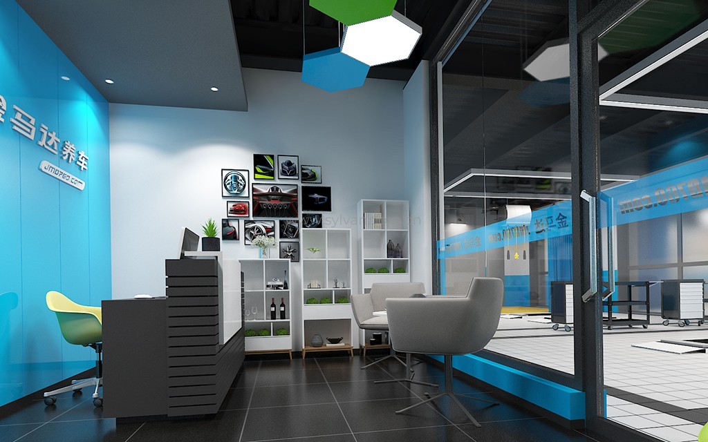 汽车修理厂门头设计、汽车修理厂接待大厅设计、汽车修理厂客户休息区、展区及配件区设计。