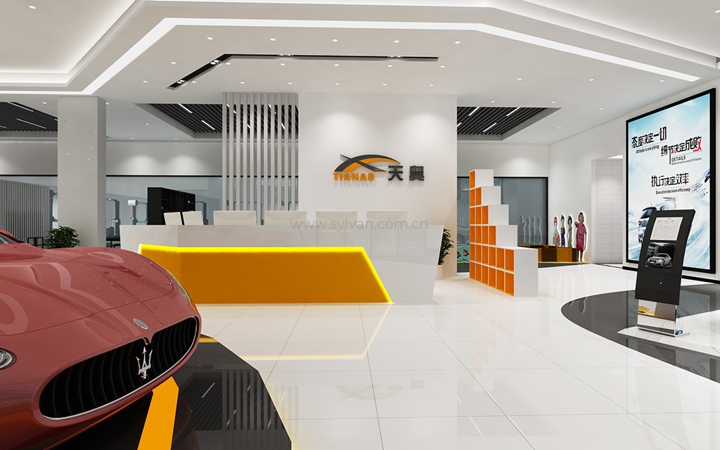 汽车修理厂门头设计、汽车修理厂接待大厅设计、汽车修理厂客户休息区、展区及配件区设计。