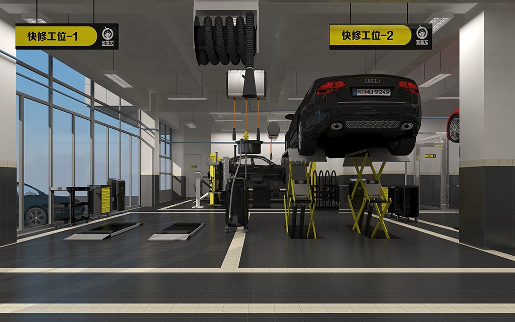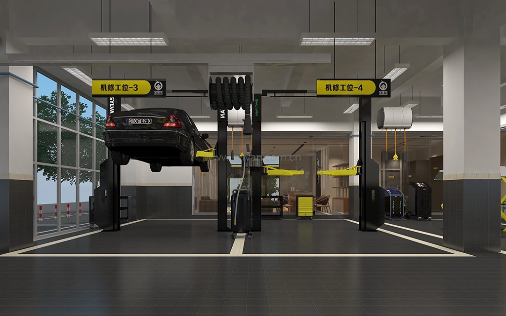 汽修厂企业VI设计、汽车修理厂接待大厅设计、汽修厂车间布局规划、整厂设备供气供水系统配套。